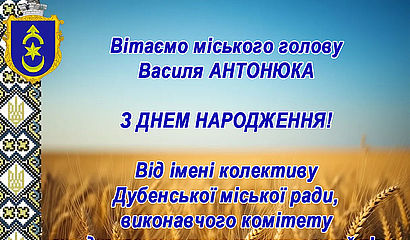 Вітання з нагоди ювілею міського голови Дубна Василя...