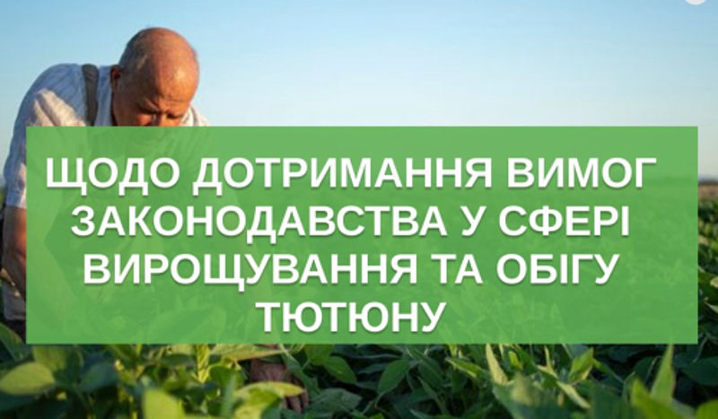 Дотримання вимог законодавства України у разі здійснення діяльності пов’язаної з вирощуванням, зберіганням, переробкою та реалізацією тютюну