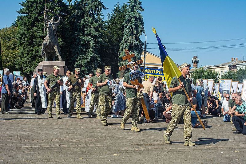 Прихиливши коліна та схиливши голови в глибокій скорботі, з пошаною та усіма військовими почестями Дубенська громада зустріла свого Героя.