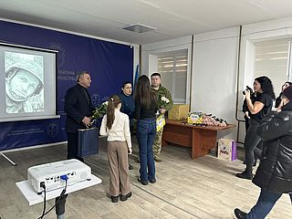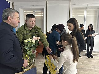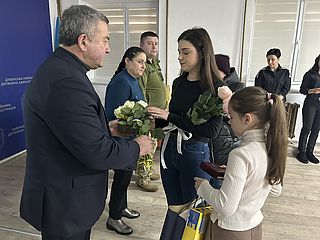 Очільник міста від усієї Дубенської громади висловив слова шани, вдячності й підтримки родині мужнього захисника України, разом з високою відзнакою вручив подарунок та квіти.