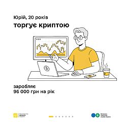 20-річний Юрій розібрався з криптовалютою, зареєструвався на біржі та слідкує за коливаннями на ринку. Щомісяця від операцій із купівлі-продажу крипти він отримує близько 8 тис. грн (24 тис. грн/квартал; 96 тис. грн/рік).