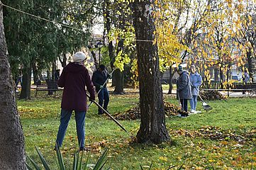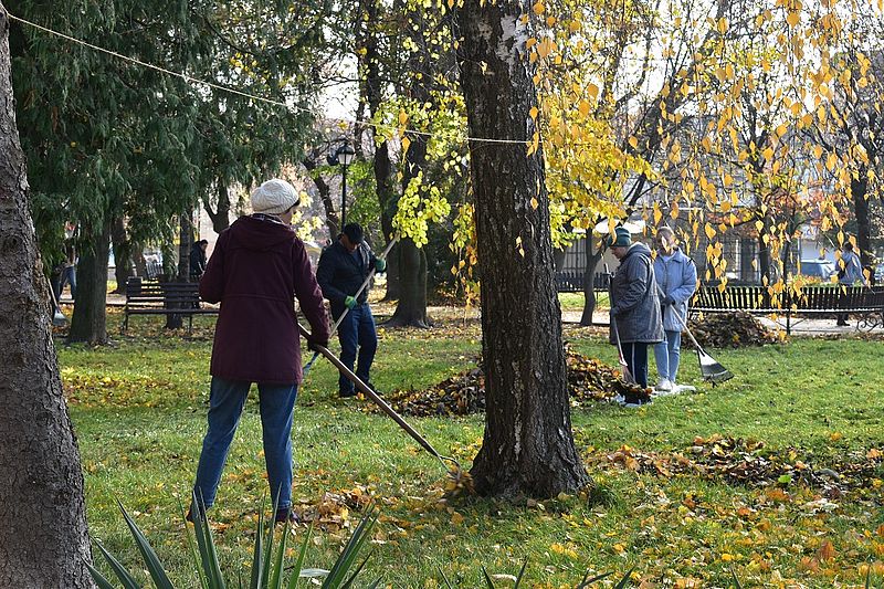 Восени різнокольорове листя багряним килимом покриває землю. Така картина радує око кожного мешканця нашої громади, але й додає роботи по упорядкуванню територій зелених зон.