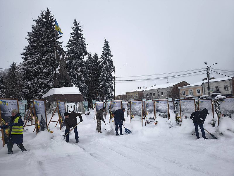 До того ж, комунальники працюють над розчищенням зупинок громадського транспорту, пішохідних зон та тротуарів, проводять протиожеледні заходи. Їм допомагають працівники міської ради, прибираючи сніг біля інсталяції «Герої не вмирають» на майдані Незалежності та біля Меморіалу Героїв.