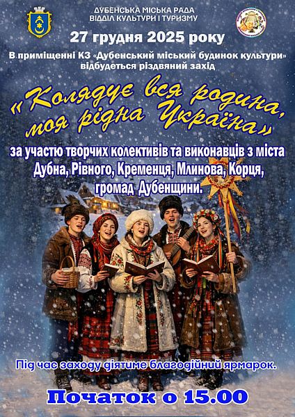Захід відбудеться у суботу, 27 грудня, о 15.00 годині у приміщенні КЗ «Дубенський міський будинок культури» (вул.Д.Галицького,24).
